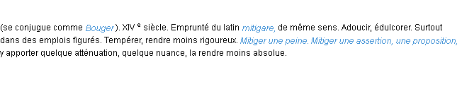 Ancienne signification éditée par l’Académie Française, année 1798.Merci à Claudette et Amaury pour la numérisation du mot mitiger.