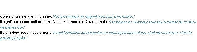 Définition du mot « monnayer » par l’Académie Française (édition de 1986).