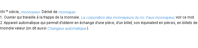 Signification du terme « monnayeur », parution de 1876 (dictionnaire le Littré).