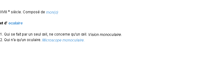 Signification éditée en 1932 pour le terme « monoculaire » par l’Académie Française.