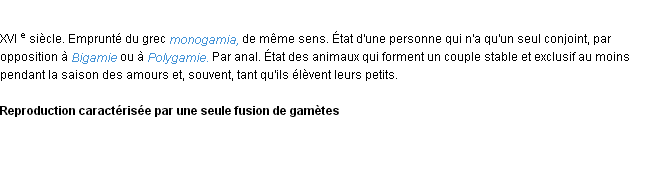 Définition « monogamie » du dictionnaire académique Français, parution de l’année 1932.