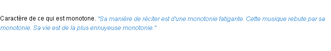 Ancienne signification éditée en 1798 pour le terme « monotonie » par l’Académie Française.Merci à Placide et Olivie pour la numérisation du mot monotonie.