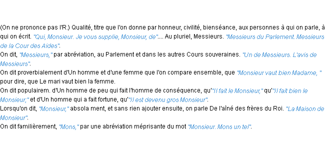 Ancienne signification éditée en 1835 pour le terme « monsieur » par l’Académie Française.