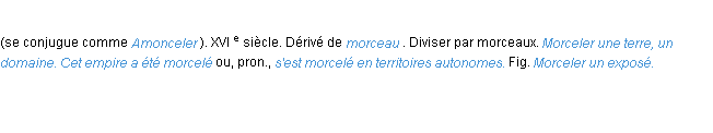 Définition « morceler » du dictionnaire académique Français, parution de l’année 1932.
