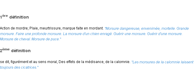Ancienne signification parue en 1798 dans dictionnaire de l’Académie Française.Merci à Paule et Alain pour la numérisation du mot morsure.
