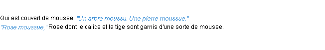 Définition de « moussu » de source académique (Académie Française, parution de 1986).