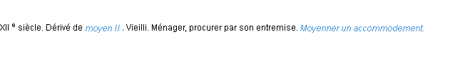 Ancienne signification développée en 1798 par l’académie Française (ACAD - 1798).Merci à Theirn et Dominique pour la numérisation du mot moyenner.