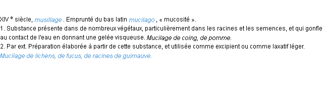 Définition du mot « mucilage » par l’Académie Française (édition de 1986).