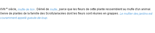 Ancienne signification éditée en 1835 pour le terme « muflier » par l’Académie Française.