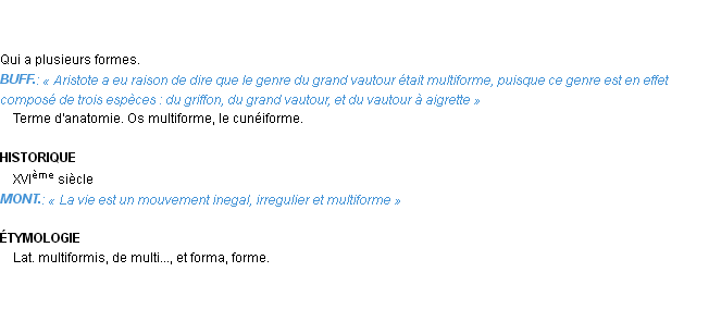 Définition du mot « multiforme » par l’Académie Française (édition de 1986).