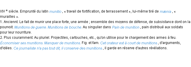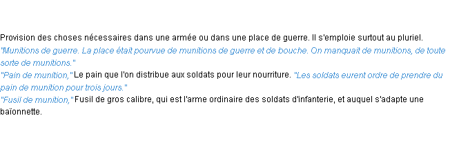 Ancienne définition académique pour le terme « munition » (parue en 1835).