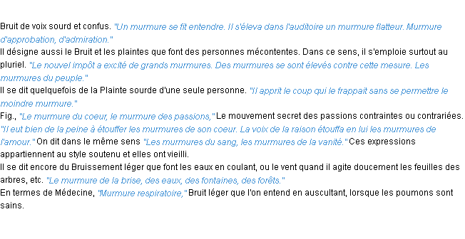 Ancienne définition académique pour le terme « murmure » (parue en 1835).