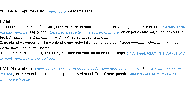 Signification du terme « murmurer », parution de 1932, dictionnaire académique Français.