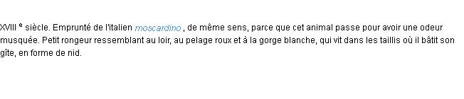 Définition académique pour le terme « muscardin » (parue en 1986).