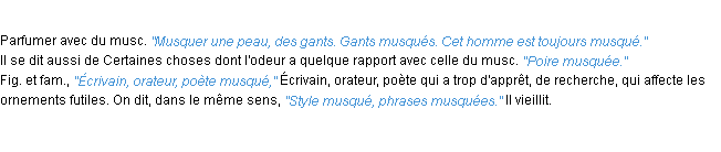 Signification du terme « musquer », parution de 1932, dictionnaire académique Français.