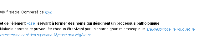 Définition issue du dictionnaire wiktionary pour le mot « mycose ».