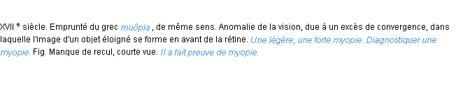 Signification éditée en 1986 pour le terme « myopie » par l’Académie Française.