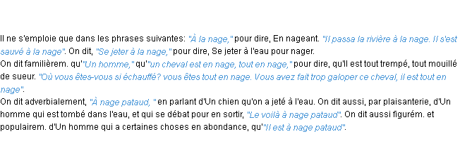 Définition du mot « nage » par l’Académie Française (édition de 1986).