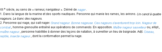 Définition du mot « nageur » par l’Académie Française (édition de 1932).