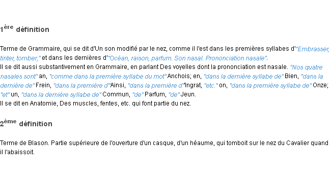 Ancienne définition de l’Académie Française (édition de 1835) pour le mot « nasal ».