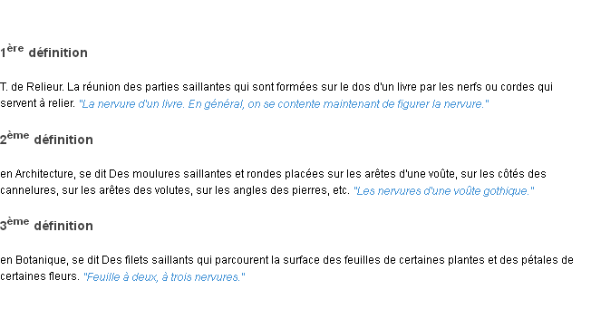 Définition « nervure » du dictionnaire académique Français, parution de l’année 1986.
