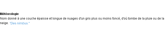 Définition du mot « nimbus » par Emile Littré (édition de 1876).Merci à Fernand et Fabien pour la numérisation du mot nimbus.