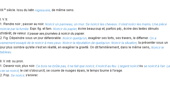Définition du mot « noircir » par l’Académie Française (édition de 1932).