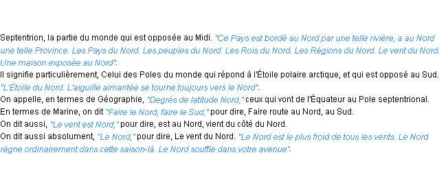 Définition du mot « nord » par l’Académie Française (édition de 1932).