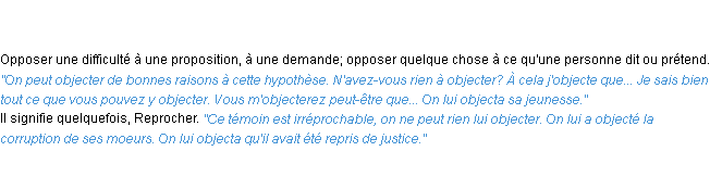 Ancienne définition de l’Académie Française (édition de 1835) pour le mot « objecter ».