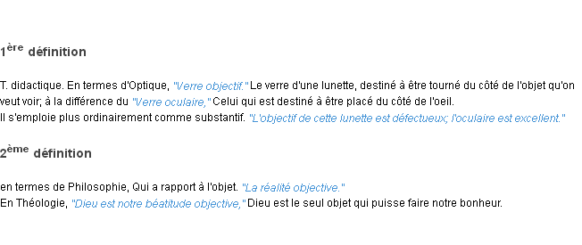 Ancienne définition « objectif » du dictionnaire académique Français, parution de l’année 1835.