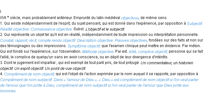 Signification du terme « objectif », parution de 1932, dictionnaire académique Français.