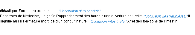 Ancienne définition de l’Académie Française (édition de 1835) pour le mot « occlusion ».