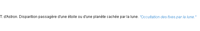 Ancienne signification du terme « occultation », parution de 1798, dictionnaire académique Français.Merci à Héloïse et Blaise pour la numérisation du mot occultation.