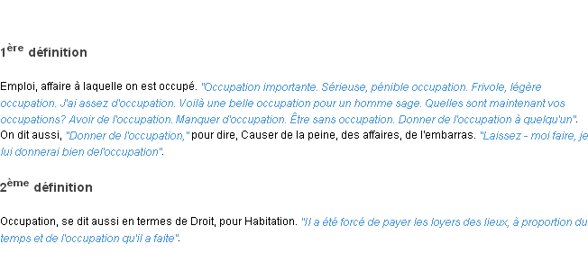 Signification éditée en 1932 pour le terme « occupation » par l’Académie Française.
