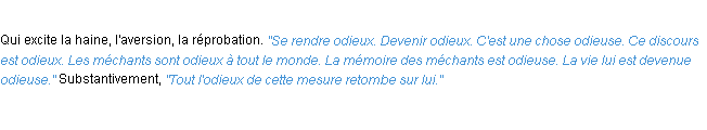 Ancienne définition de l’Académie Française (édition de 1835) pour le mot « odieux ».