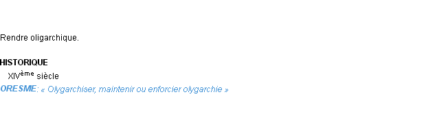 Définition d’Emile Littré (édition de 1876) pour le mot « oligarchiser ».