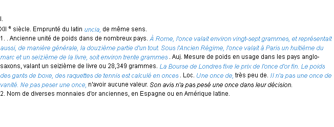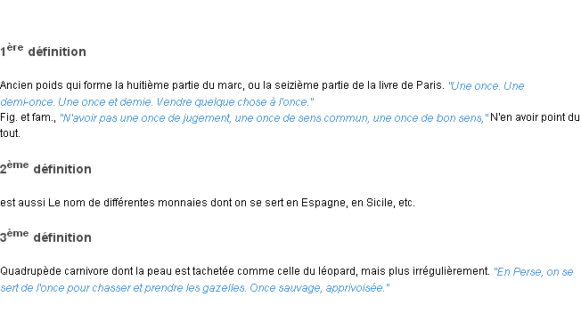 Ancienne définition du mot « once » par l’Académie Française (édition de 1835).
