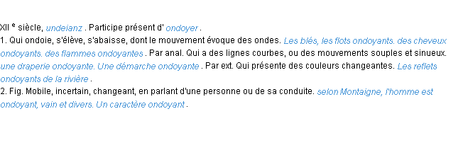 Définition de « ondoyant » de source académique (Académie Française, parution de 1986).