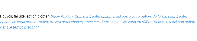 Définition du mot « option » par l’Académie Française (édition de 1932).