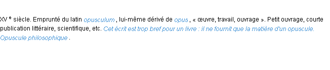 Ancienne signification éditée en 1798 pour le terme « opuscule » par l’Académie Française.Merci à Théodore et Jean-marie pour la numérisation du mot opuscule.