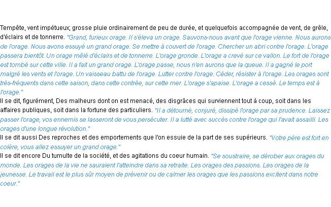 Ancienne définition académique pour le terme « orage » (parue en 1835).