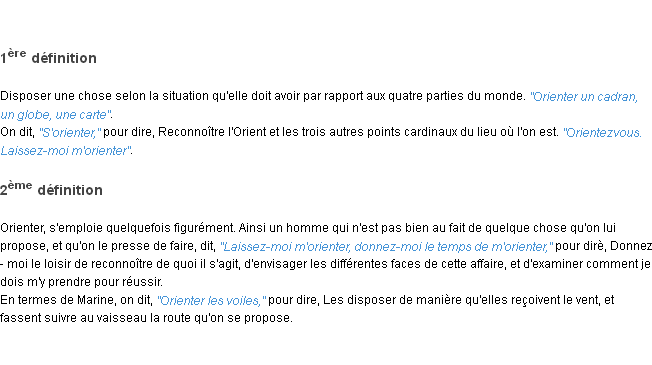 Signification éditée en 1986 pour le terme « orienter » par l’Académie Française.