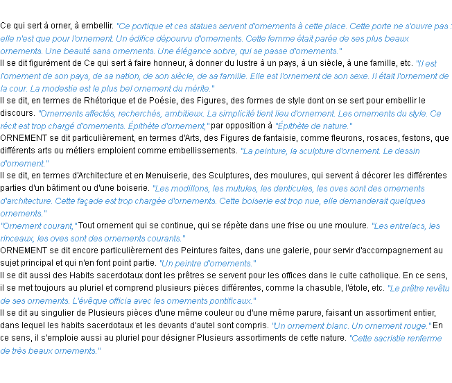 Définition « ornement » du dictionnaire académique Français, parution de l’année 1932.