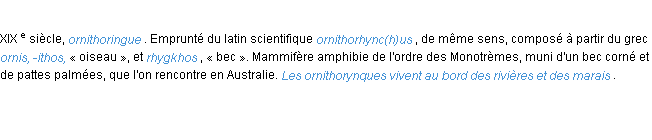 Définition « ornithorynque » du dictionnaire académique Français, parution de l’année 1932.Merci à Maximilienne et Félix pour la numérisation du mot ornithorynque.