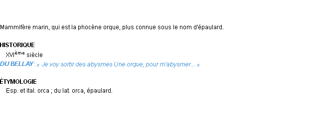Ancienne définition de « orque » de source académique (Académie Française, parution de 1798).