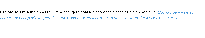 Définition académique pour le terme « osmonde » (parue en 1986).