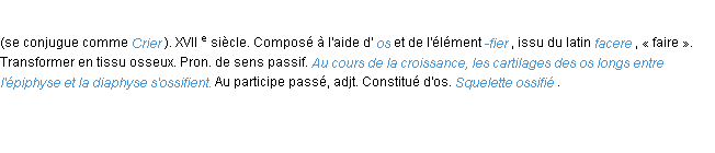 Définition académique pour le terme « ossifier » (parue en 1932).