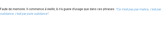 Ancienne définition du mot « oubliance » par l’Académie Française (édition de 1694).Merci à Valérie et Ghislain pour la numérisation du mot oubliance.