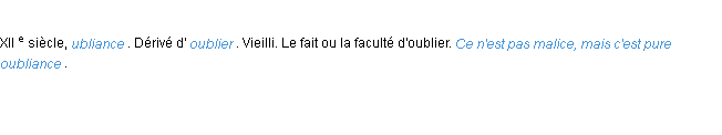 Définition de l’Académie Française (édition de 1932) pour le mot « oubliance ».