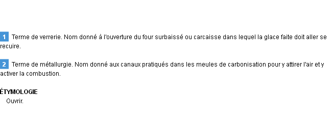 Signification éditée en 1876 pour le terme « ouvreau » par Emile Littré.